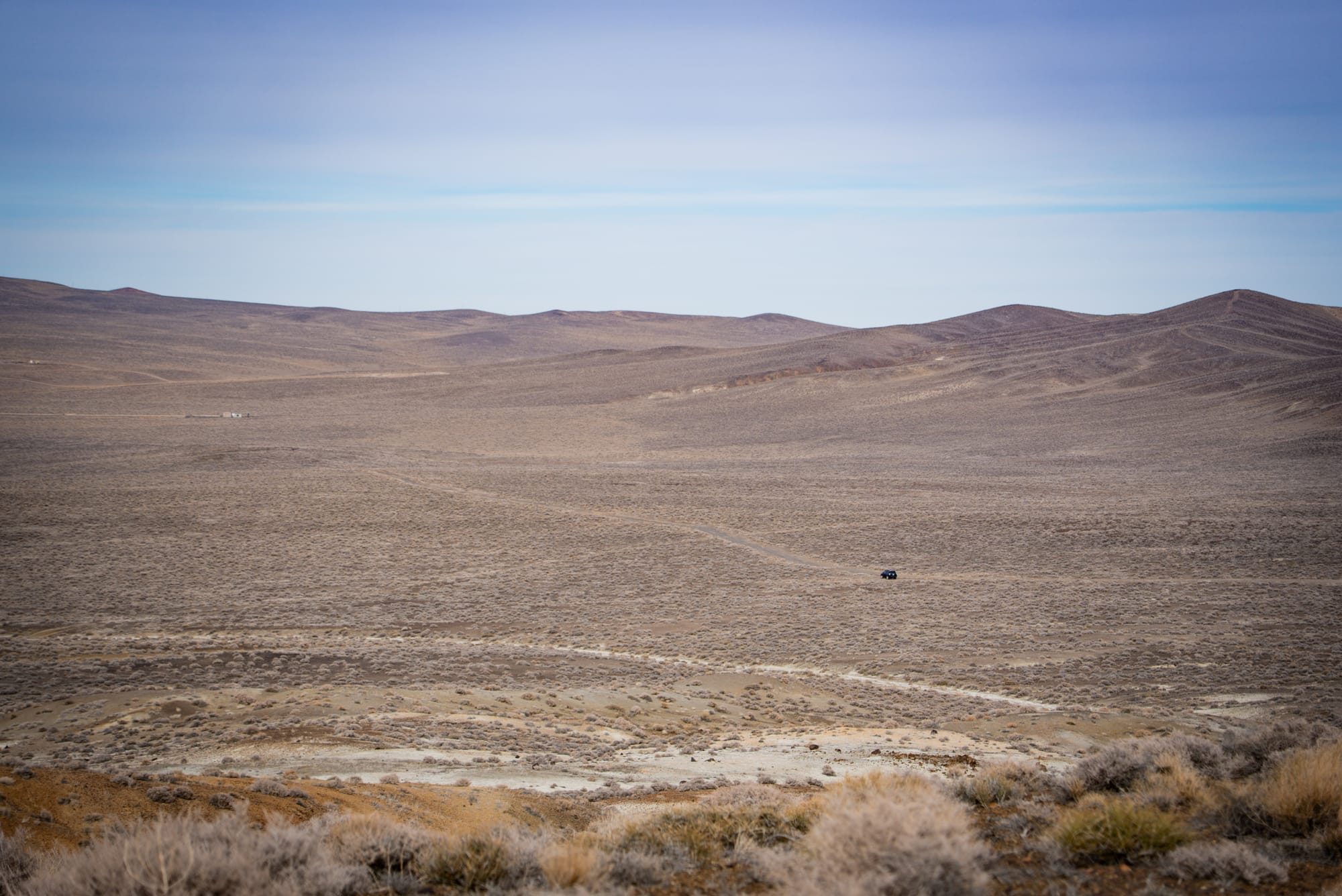 I was thinking to myself when getting to this wide expanse of a valley, that it's so hard to really capture that essence of "freedom" that I see in the Northern Nevada deserts. I think it's not only the openness of the area, but the small dirt roads that move about; seeing those makes me know that people have just decided to go a certain direction, and pioneered their way into new parts of the desert.