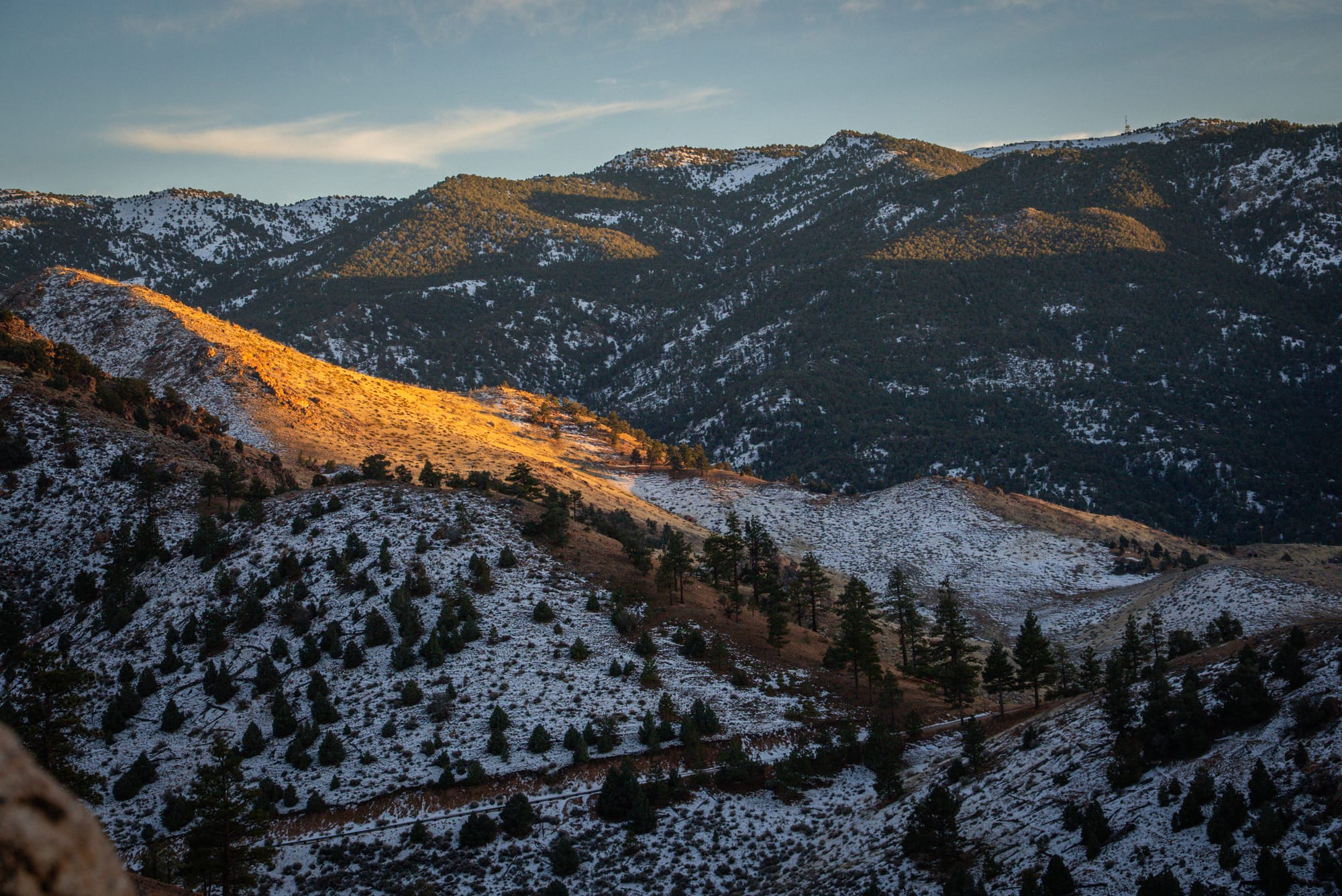 Several lookout spots were built on rock outcroppings. Almost all of them were covered in graffiti. Broken glass bottles of past parties littered the bottoms of the outcroppings, where I was attempting to find some good landscape angles before the sun disappeared. I didn't have much luck, and ended up taking a few more post-Golden Hour photos.