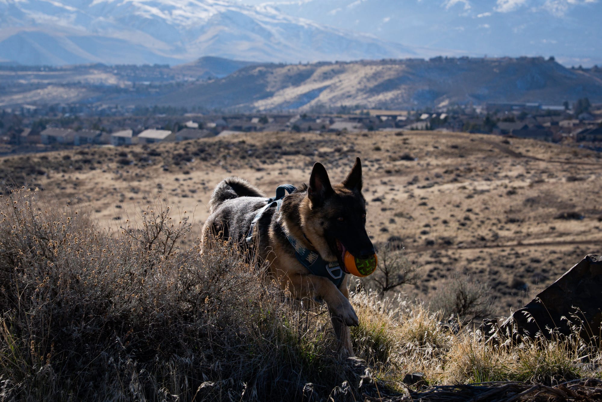 Princess was pretty good at keeping that ball in her mouth the whole time we were there, besides snow-eating breaks and a couple charges at rabbits. At the end, she did fully forget the ball, and I had her search for it, with success. It's a good ball, which has survived two years without getting destroyed by her, still squeaking whenever she gives it a really good squeeze.